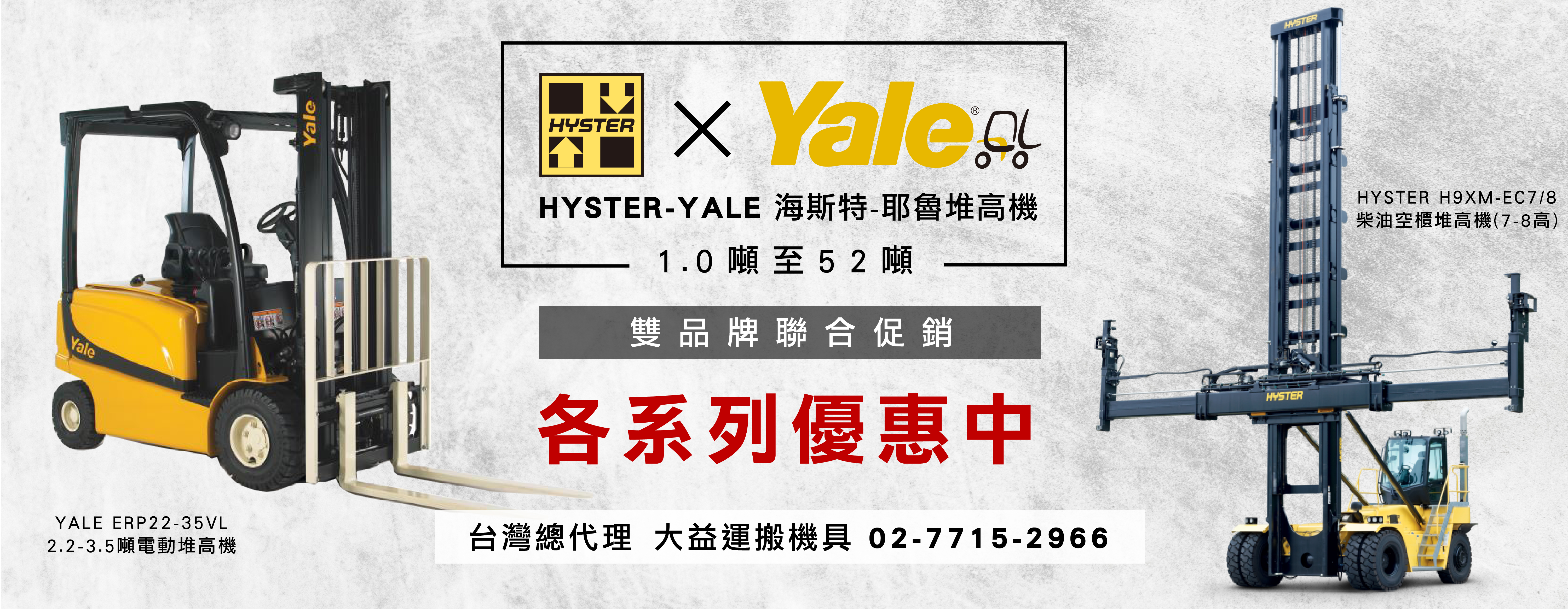 Yale耶魯是世界上歷史最悠久的堆高機製造商之一。自1920年的首台Yale耶魯堆高機誕生至今,Yale耶魯在物料搬運設備領域已有100多年的行業經驗。品牌特色:高品質、高效能、低油耗。